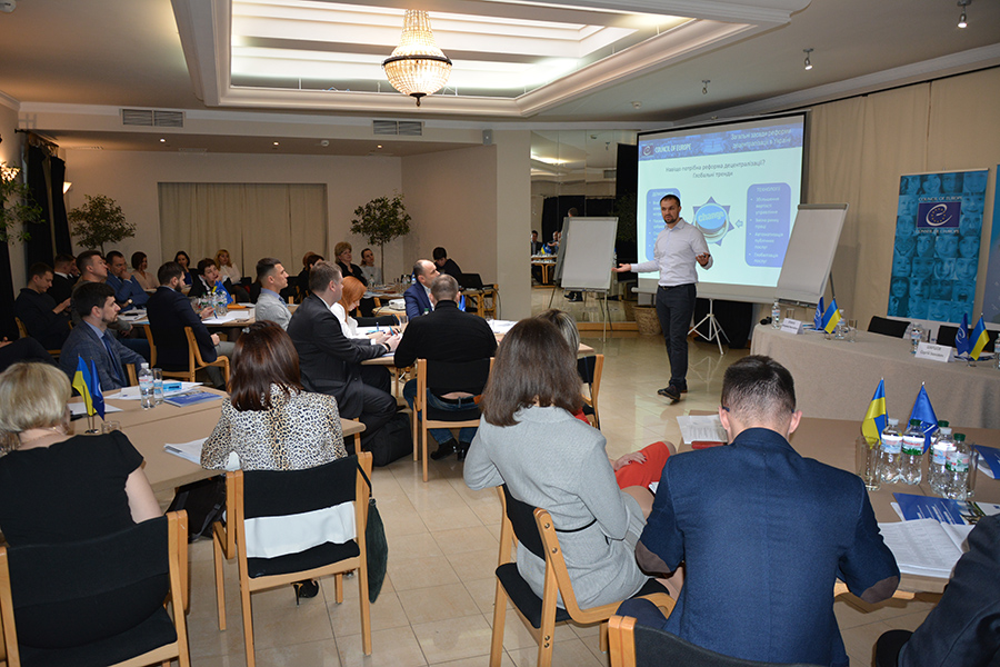 19 березня 2019 року в м. Київ відбулась презентація тренінгової програми для суддів «Зміст, принципи та мета реформи з децентралізації: посібник для суддів, які розглядають спори, пов’язані із оскарженнями процесів добровільного об’єднання та приєднання територіальних громад», розробленої за підтримки Програми Ради Європи «Децентралізація і реформа місцевого самоврядування в Україні». Мета тренінгової програми-посібника – поширення серед суддівського корпусу інформації про концепцію, логіку та ідеологію реформи місцевого самоврядування та територіальної організації влади.