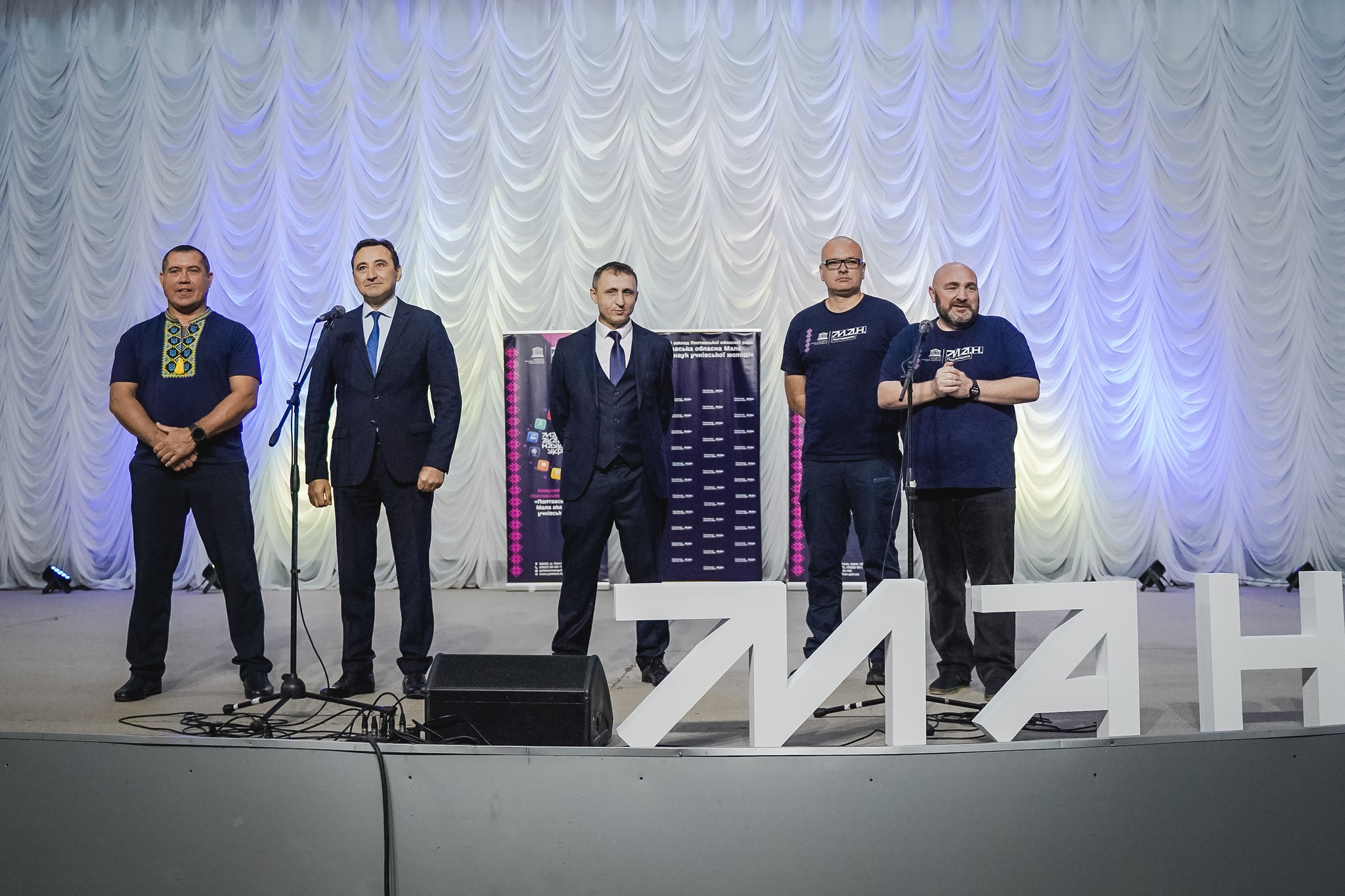 Вітали присутніх: перший заступник голови Полтавської обласної ради Олександр Лемешко, заступник начальника Полтавської ОВА Антон Чубенко, директор Департаменту освіти і науки Полтавської ОВА Євген Кончаковський, депутат обласної ради Олег Діденко, очільник КЗ Полтавської обласної ради «Полтавська обласна Мала академія наук учнівської молоді» Валерій Биков.
