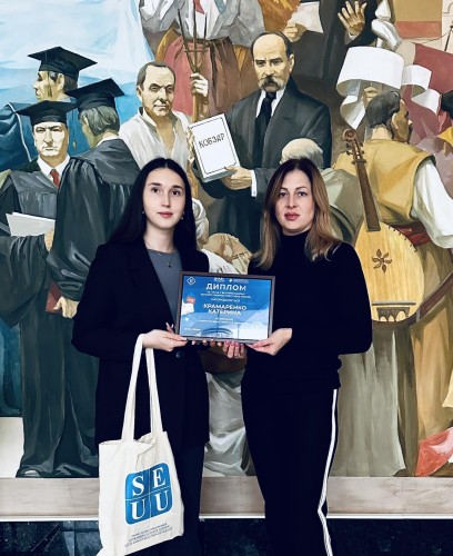 Наукова робота студентки 3 курсу 36 групи Катерини КРАМАРЕНКО за темою «Ефективність сучасного рівня соціального діалогу в Україні: переваги, проблеми та перспективи розвитку» зайняла І місце на Всеукраїнському конкурсі творчих робіт серед молоді (науковий керівник – к.ю.н., доцентка кафедри конституційного, адміністративного, екологічного та трудового права Анна Сергіївна СИДОРЕНКО).